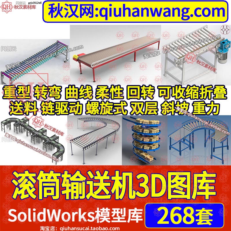 这是一款滚筒输送机三维图纸合集库。这款合集库包含了各种类型的滚筒输送机模型。有工业使用的重型滚筒输送机。有转弯用的曲线输送带,有柔性可折叠的,可收缩的。有链驱动的,螺旋式的,斜坡型的,重力型的滚筒输送机sw模型。主要是solid works模型格式,大部分还有stp等通用格式。